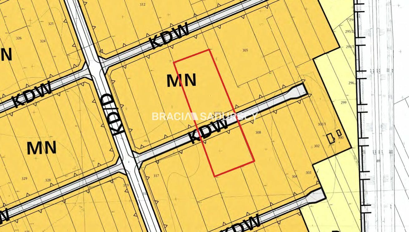 Zgodnie z MPZP działka leży w terenie zabudowy mieszkaniowej jednorodzinnej , oznaczonym w planie symbolem MN. Teren budowlany przedzielony jest pasem pod drogi wewnętrzne KDW o pow. 398 m 2