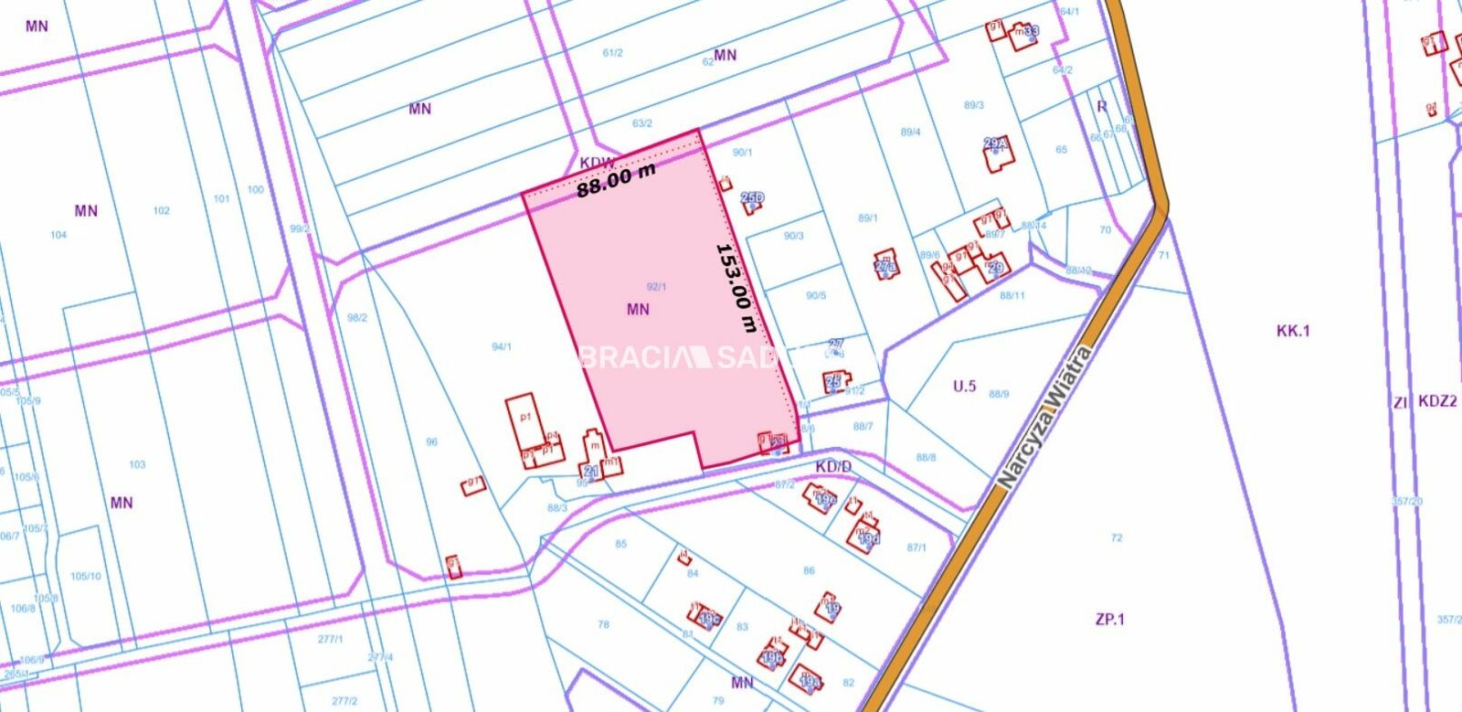 Wymiary działki: 88 x 153 m.