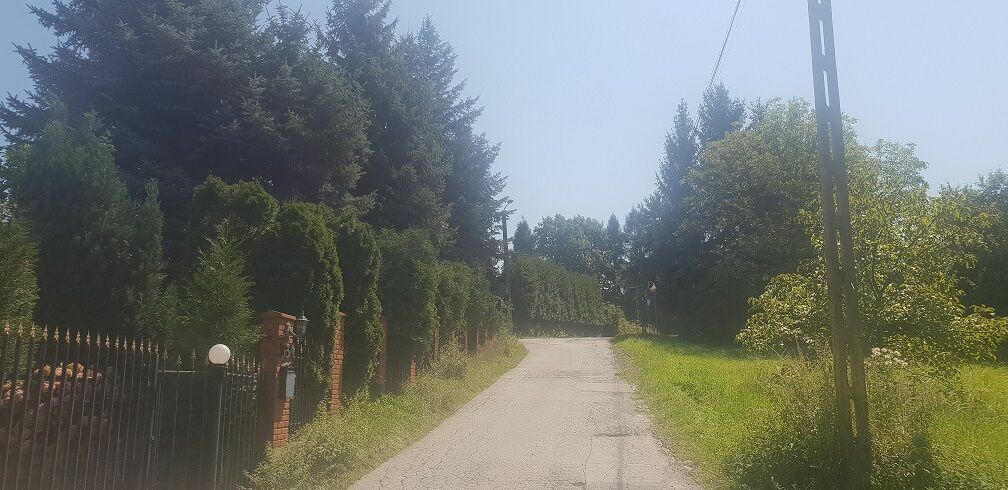 Działka budowlana z WZ ką, płaska, ustawny prostokąt, położona bezpośrednio przy drodze. Okolica bardzo zielona, spokojna, pośród nowej zabudowy domów jednorodzinnych.