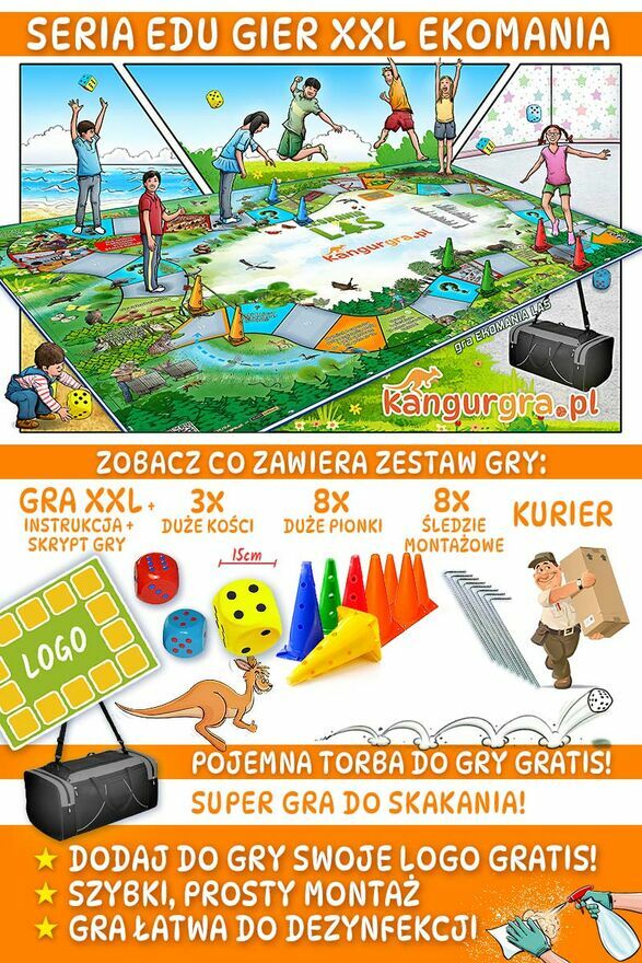 Poznaj edukacyjne gry XXL do budowania postawy ekologicznej u dzieci i dorosłych.Granie to nauka przez zabawę i ruch na wielkich grach planszowych do skakania w wymiarze XXL.