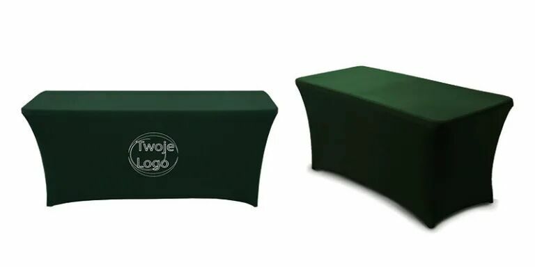 Elastyczne pokrowce z twoim nadrukiem na stół koktajlowy, cateringowy, eventowyZielony pokrowiec z logo szyjemy na stół cateringowy. Ten rodzaj pokrowców to idealne rozwiązanie na imprezy, eventy i targi, wszędzie tam, gdzie chcecie pokazać nietuzinkowe podejście do reklamy. Pokrowiec jest niezwykle rozciągliwy i dzięki temu dopasuje się idealnie do rozmiaru stołu.