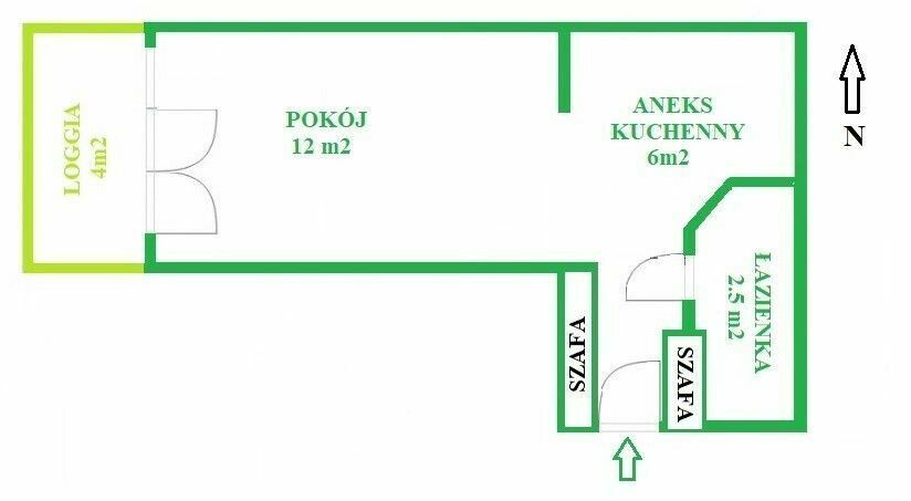 23 m2 + 4 m2 loggia, usytuowane na 1 piętrze w 4-piętrowym bloku.