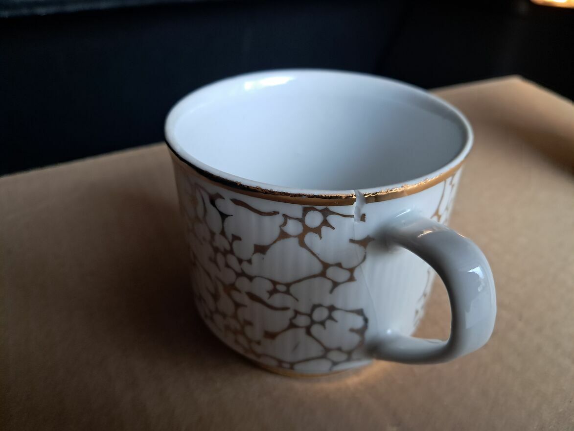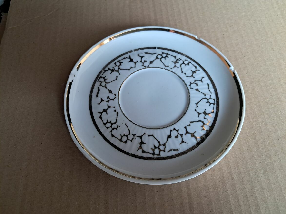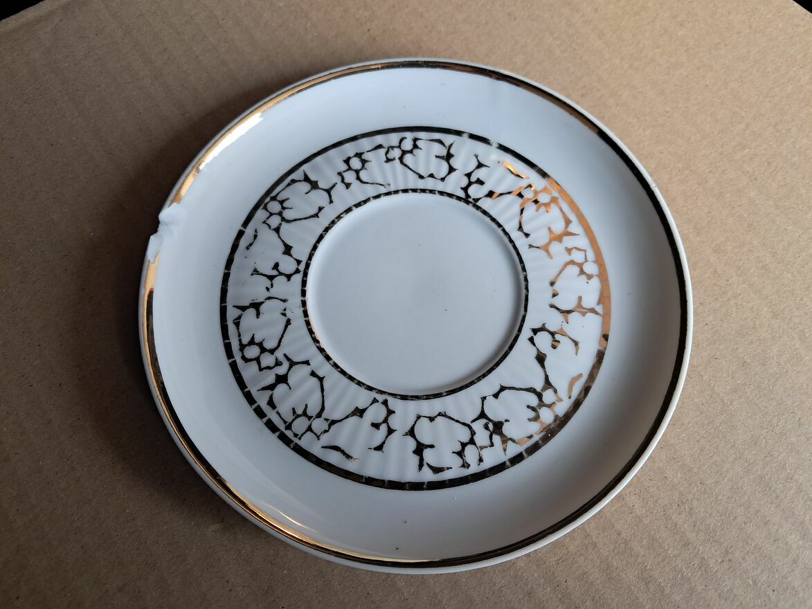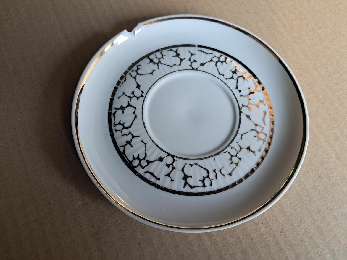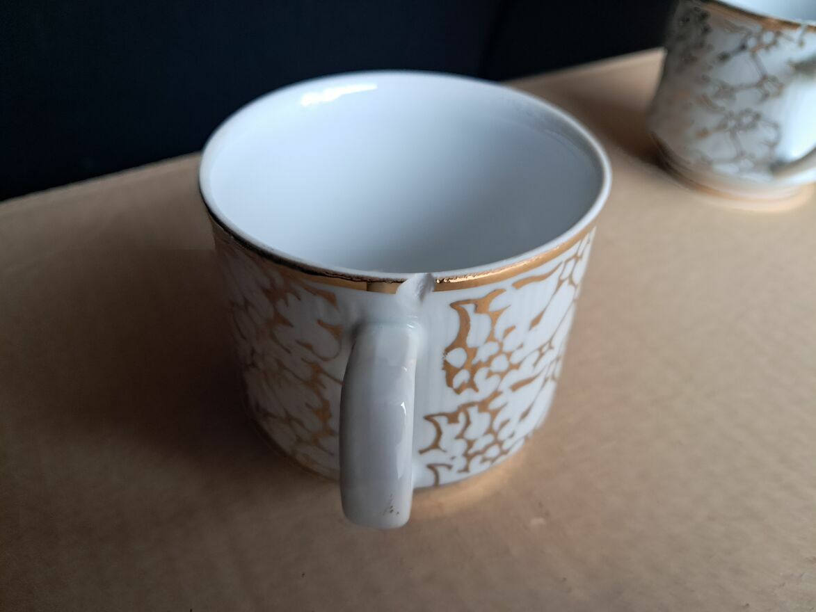 Dodatkowo posiadam jeszcze 2 filiżanki i 3 spodeczki (wymiary: 1,5/14) z serwisu, ale z drobnymi ubytkami, widoczne na odrębnych fotografiach. Do ew. sprzedaży w uzgodnionej cenie.