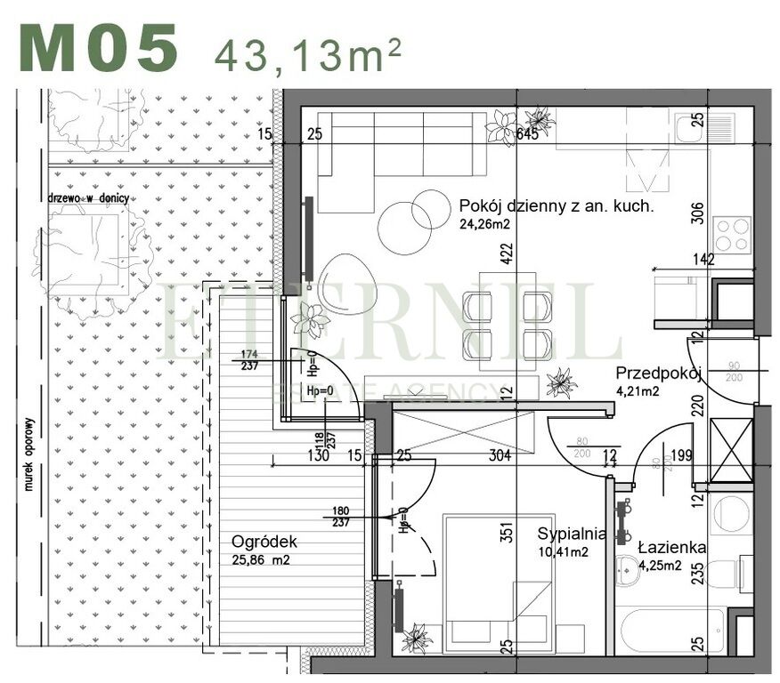 aneksem kuchennym 24,26 m2 zapewnia jasną, komfortową przestrzeń do