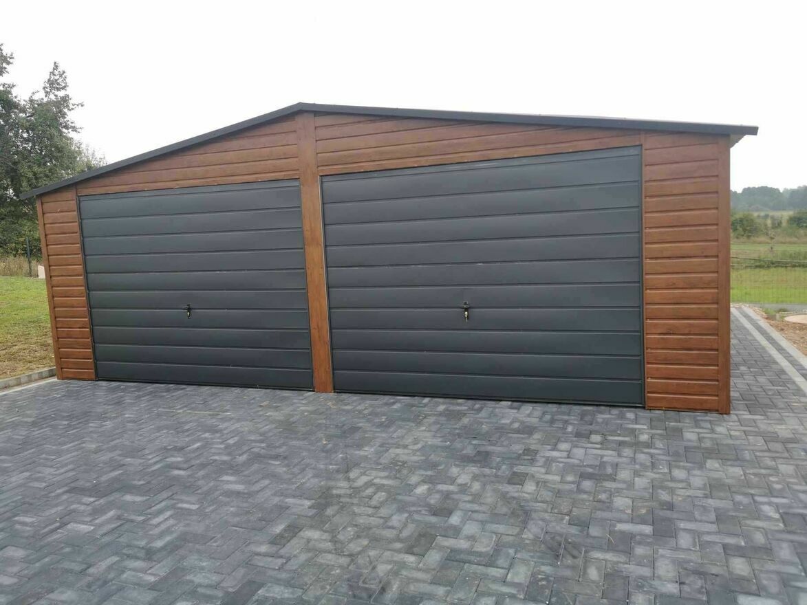 Prezentujemy garaż blaszany w kolorze drewnopodobnym złoty dąb ,natomiast bramy w kolorze GRAFIT MAT..WYMIARY GARAŻU: