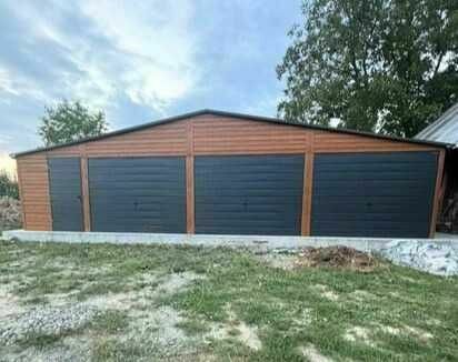Garaż blaszany 11x6 drewnopodobny trzystanowiskowy dwuspadowy