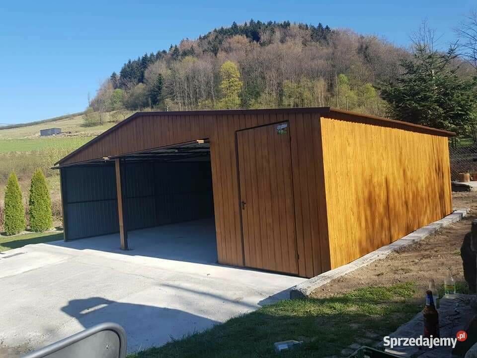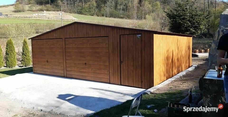 Garaż blaszany 8x7 drewnopodobny dwustanowiskowy