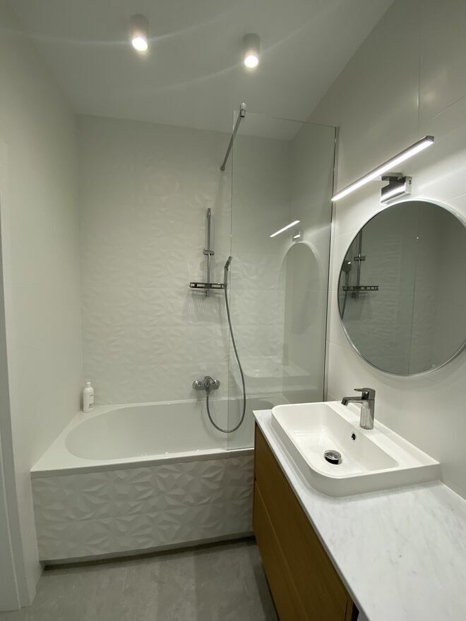 - łazienka (wanna z prysznicem, pralka, wc)