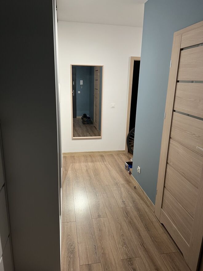 - Przedpokój: szafa w zabudowie, panele na podłodze
