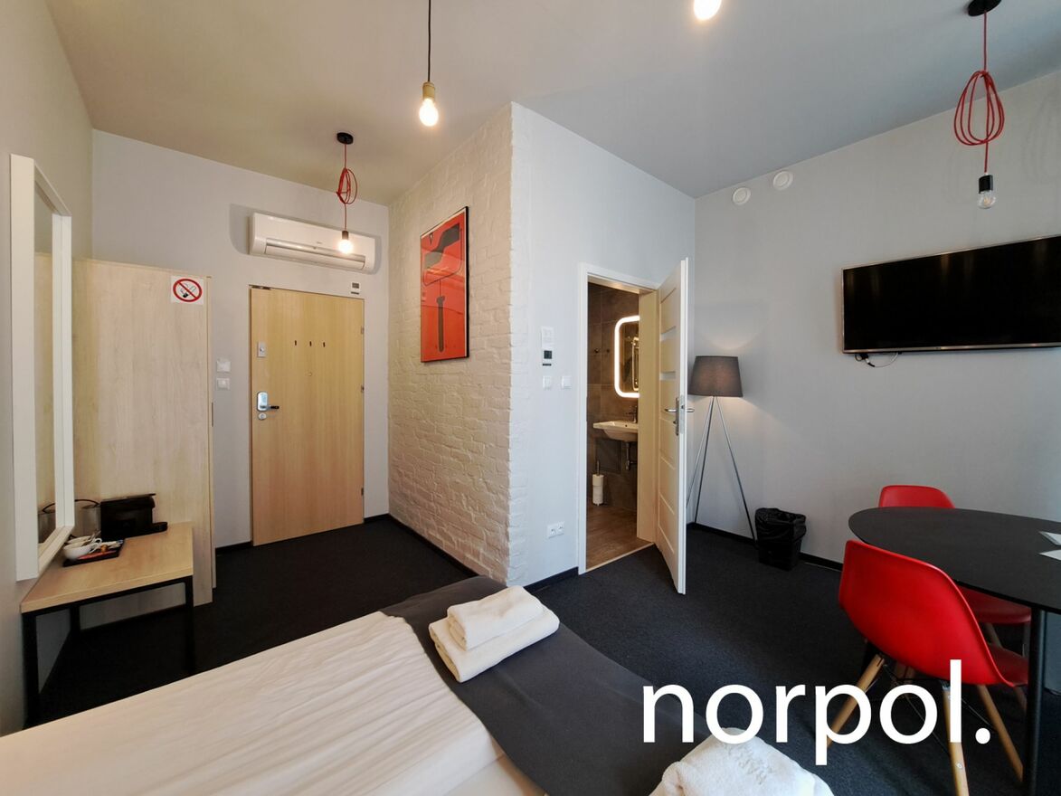 Każde mieszkanie składa się z pokoju oraz łazienki. Istnieje możliwość wykonania w nich aneksu kuchennego. Lokale urządzone zostały w stylu hotelowym i od kilku lat z powodzeniem funkcjonują jako wynajem krótkoterminowy – z wysoką stopą zwrotu. Posiadają klimatyzację, wejście na kod oraz włączniki prądu i ogrzewania na kartę. Pełna obsługa obiektu przez aplikację.