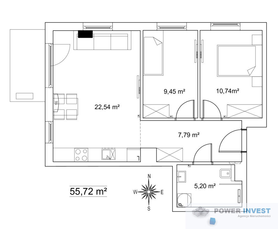 Mieszkanie znajduje się na 7 piętrze, ma powierzchnię 55,72 m2 i