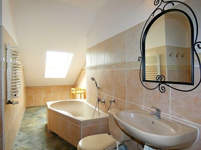 Łazienka 2 (piętro): wanna, umywalka, WC, pralka.