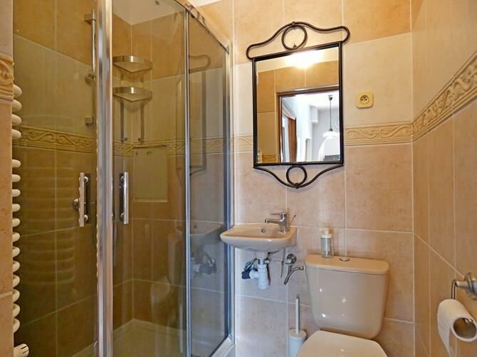 Łazienka 1: kabina prysznicowa, umywalka, WC.