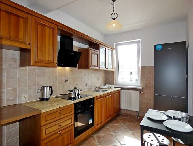 Kuchnia: zabudowa meblowa, lodówko-zamrażarka, płyta ceramiczna,