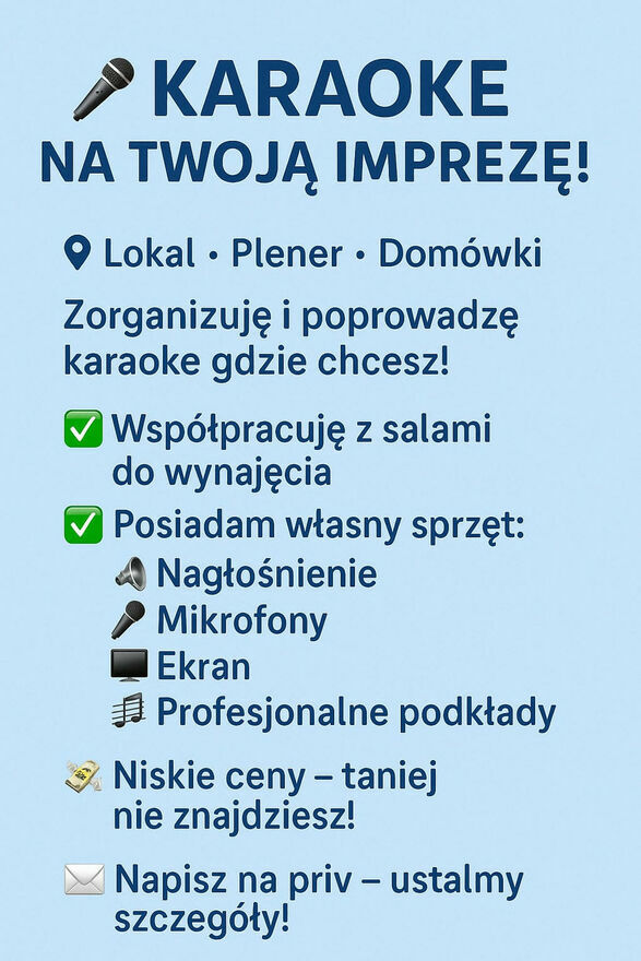 Poprowadzę Karaoke na twojej imprezie.Posiadam własny sprzęt: