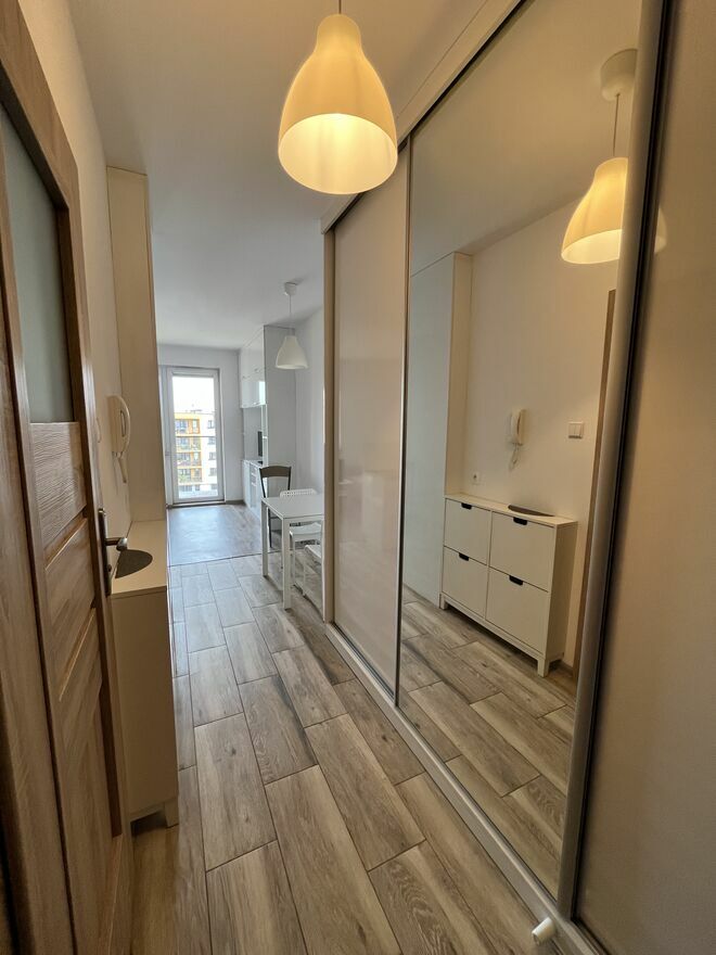 Bezpośrednio od właścicielaDo wynajęcia kawalerka 27m2 na 11 piętrze bloku z 2017 roku przy ul. Polonijna 7, całkowicie umeblowana i wyposażona.
