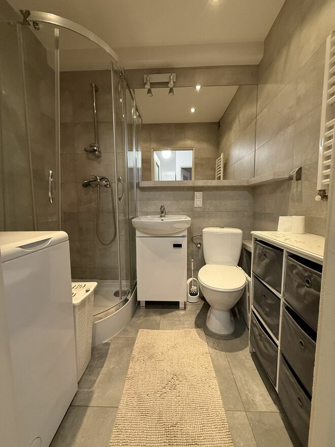 Do wynajęcia mieszkanie przy ul Telimeny (Nowy Bieżanów, blisko pierwszego przystanku tramwajowego za pętlą tramwajową). Mieszkanie znajduje się na pierwszym piętrze czteropiętrowego bloku z windą, składa się z dużego pokoju, przedpokoju, kuchni, łazienki z prysznicem. Do mieszkania przynależy komórka lokatorska. W mieszkaniu meble - szafa na przedpokoju i w pokoju, szafki w kuchni, lodówka, kuchenka elektryczna, w pokoju dodatkowo wersalka, stół, krzesła, regały. Ogrzewanie miejskie. W pobliżu szkoła, Lidl, Kaufland, kościół, blisko wyjazd na autostradę. Cena 2400 + opłaty do spółdzielni i zaliczka na media - około 800 (zaliczka stała, media wg zużycia)Powiadom o podobnych ogłoszeniach