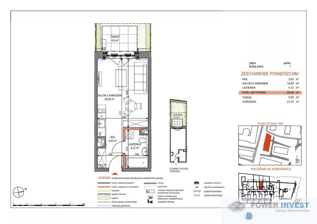 26,24 m², położoną na parterze kameralnego, nowo powstającego