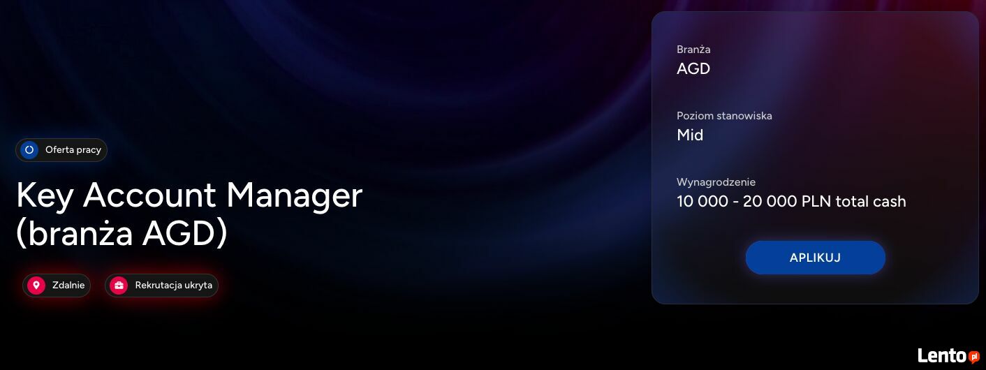 Wynagrodzenie: 10 000 - 20 000 PLN total cash