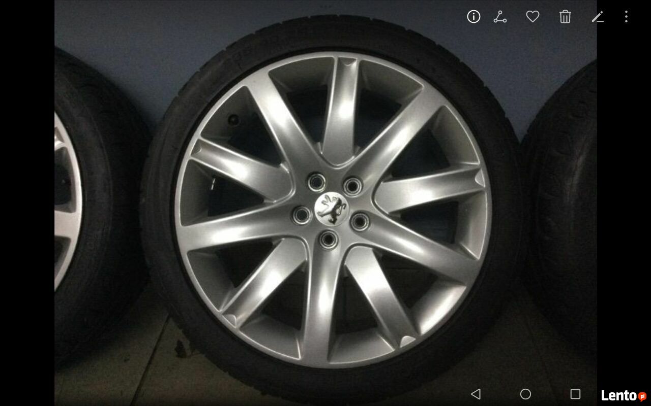 Witam, mam do sprzedania chyba najładniejsze z oryginalnych felg koncernu PSA - dziewietnastocalowe felgi NINETEEN (italy) po profesjonalnym proszkowym lakierowaniu perłowym srebrnym lakierem, felgi kupiłem jako używane za 1800zl, lakierowanie to koszt 1200 wymalowane całe, a nie tylko fronty jak to nawet robią producenci alufelg, opony 1000zl nowe wzmocnione Kormoran UHP w rozmiarze 235/40/19 ZR rok produkcji to 0722Dane felgi to 8J x19cal ET41 rozstaw śrub 5x108 otwór centrujący 65,1mm