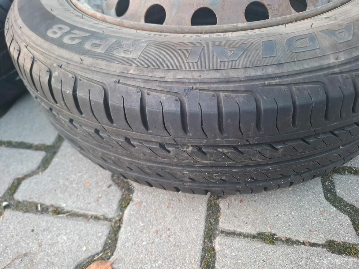 Sprzedam komplet 5 stalowych felg z oponami.Proste felgi, doskonale trzymają powietrze.