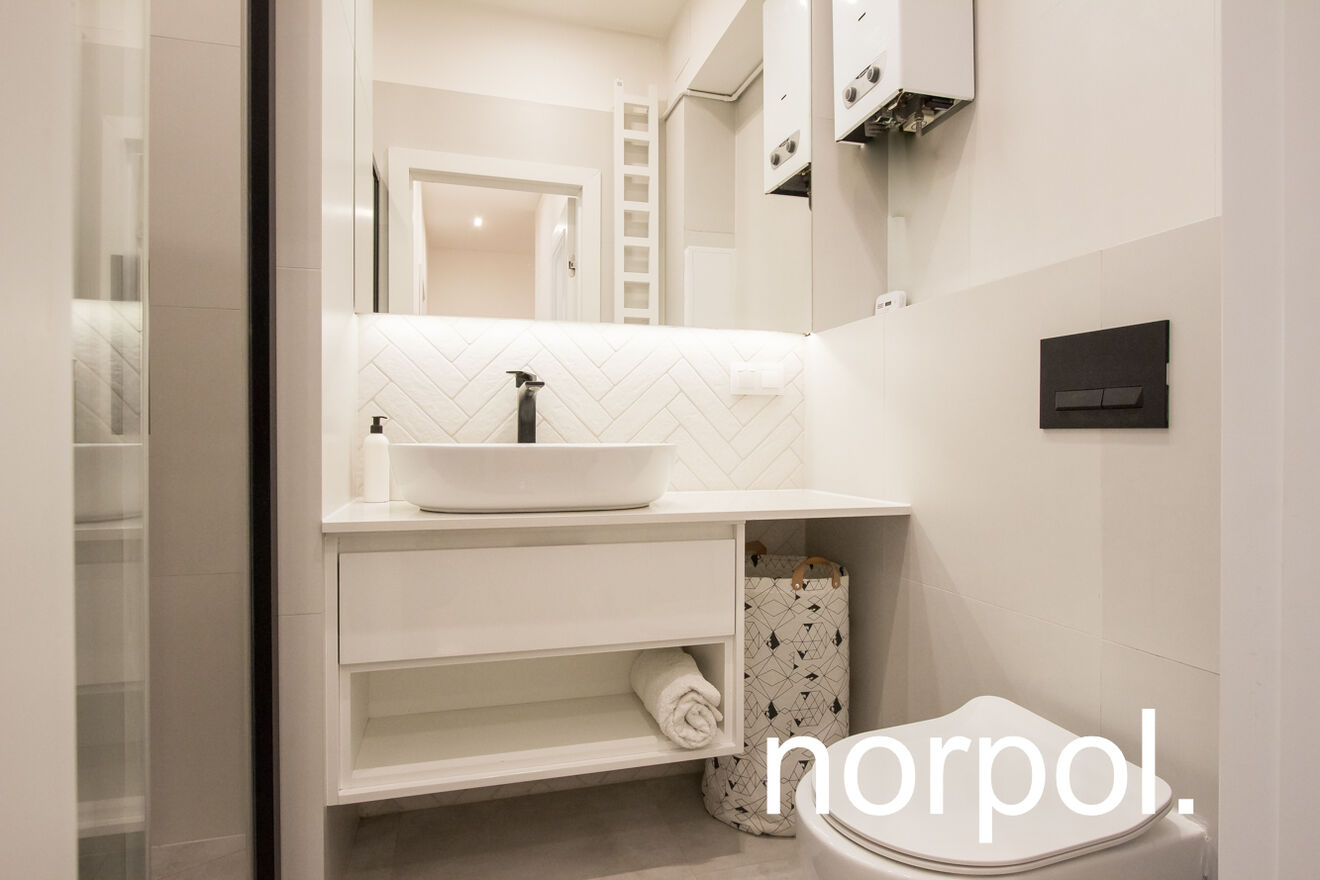 The apartment is located on the third floor and has been designed with comfort and functionality in mind. It comprises a separate, fully equipped kitchen, a cozy bedroom with a large bed and a spacious built-in wardrobe, a bright living room, a modern bathroom, and a hallway with additional storage space. The apartment has been renovated, fully furnished, and equipped with high-quality appliances, including a washing machine, dishwasher, oven, gas cooktop, and TV – ready for immediate occupancy.