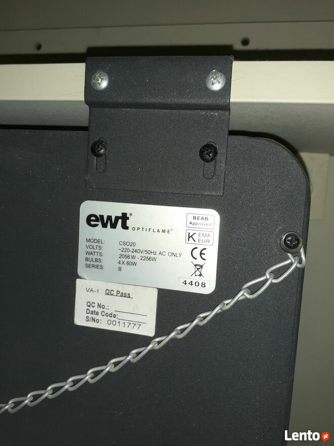 Kominek elektryczny z pilotem marki EWT Nowy nie używany ,Kominki elektryczne z efektem Optiflame wyposażone są w będący innowacyjnym rozwiązaniem, efekt płomieni.Powstaje on dzięki odpowiedniemu odbiciu światła oraz zastosowaniu imitacji paleniska