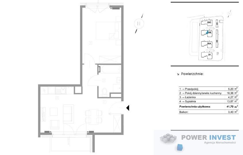 Mam przyjemność zaprezentować przytulne i funkcjonalne, 2-pokojowemieszkanie o powierzchni 41,70 m², położone w nowoczesnym budynku w
