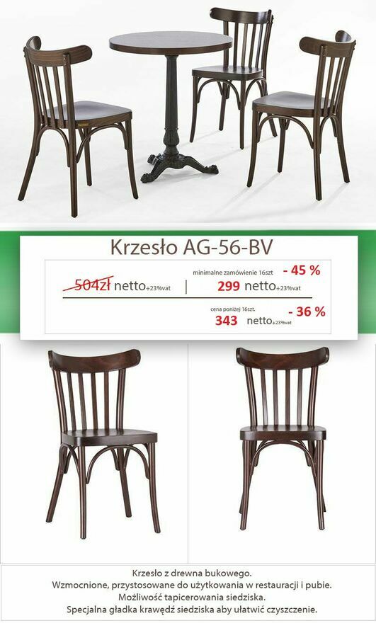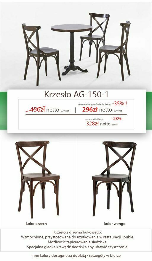 GWARANTOWANA JAKOŚĆ KRZESEŁ OD 140 LAT W RADOMSKU.Producent mebli oferuje kolekcję krzeseł giętych Thoneta w najniższych cenach w Polsce. Zobacz nasze promocje krzeseł giętych do Twojej restauracji i pubu pizzeri, . Krzesła restauracyjne z drewna bukowego w kolorze wenge lub orzech ciemny. Inne kolory za dopłatą. PROMOCJA do wyczerpania zapasów magazynowych. Niska ilość zamówienia minimalnego.