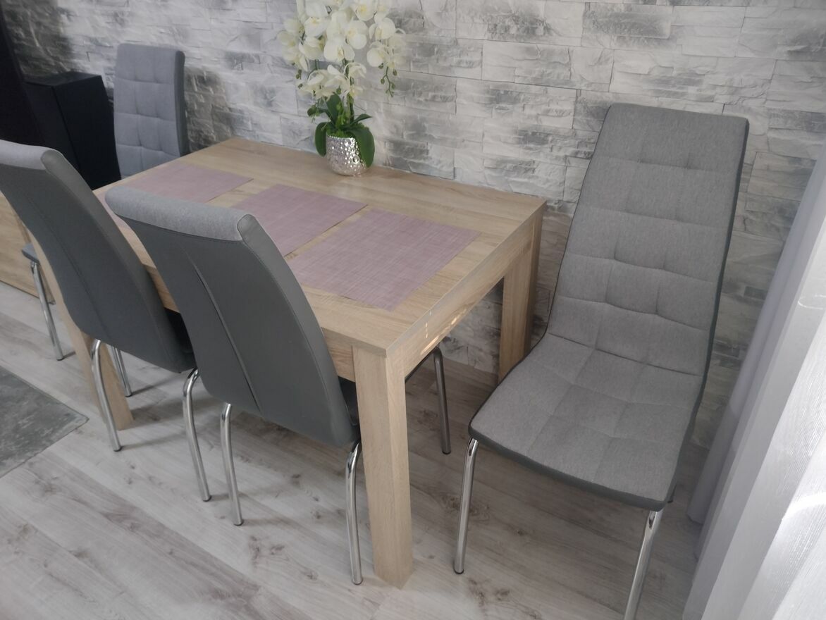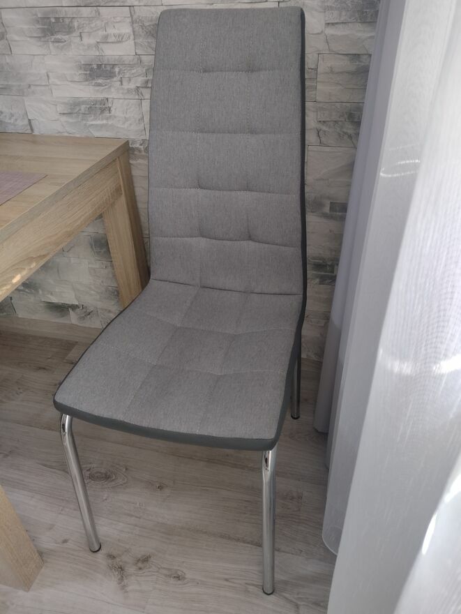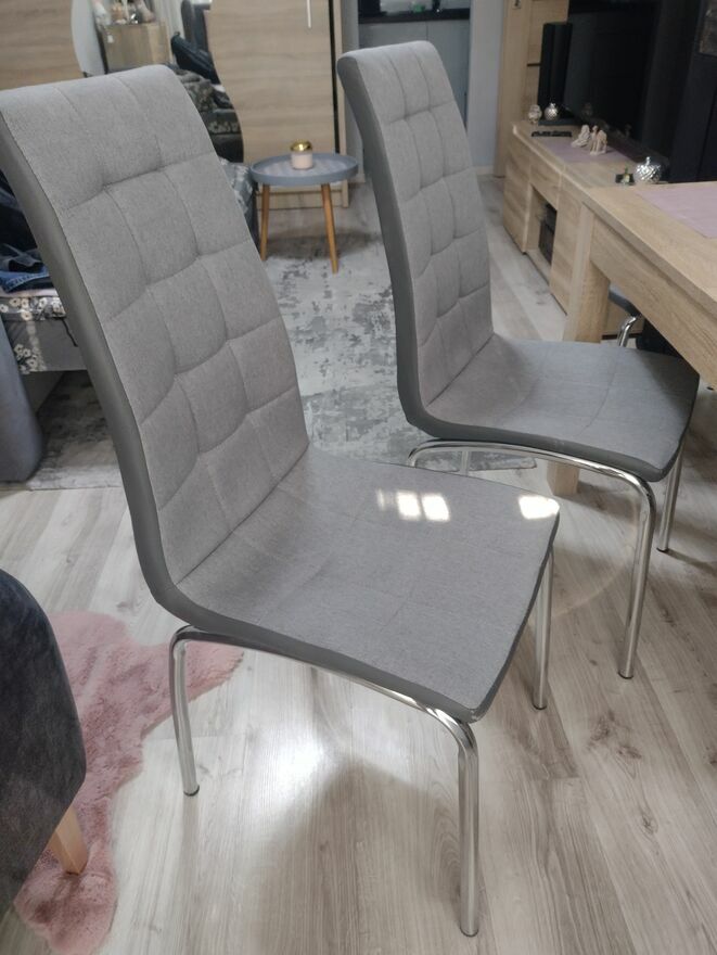 Wygodne i stylowe krzesła tapicerowane z kolekcji Agata Meble. Idealnie pasują do jadalni lub salonu, nadając wnętrzu nowoczesny i elegancki charakter..Tapicerka materiał +ekoskóra, krzesła są w dobrym stanie.Wysokość oparcia 105 cm,wysokość siedziska 57 cm.CENA DO LEKKIEJ NEGOCJACJI.Piotr