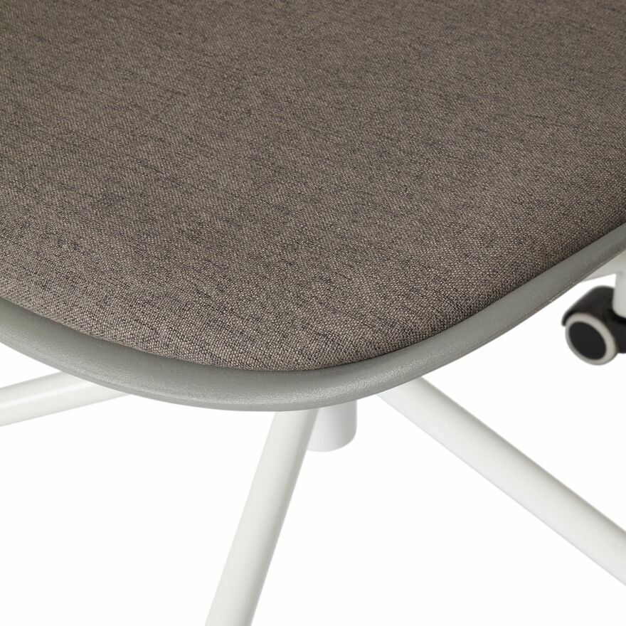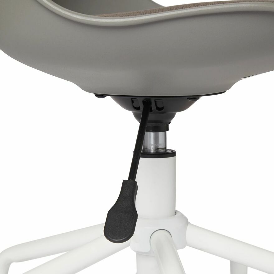 Subtelna szarość siedziska zestawiona ze śnieżnobiałą podstawą sprawia, że mebel ten staje się stylowym dopełnieniem nowoczesnego gabinetu, pokoju młodzieżowego czy kącika home office.