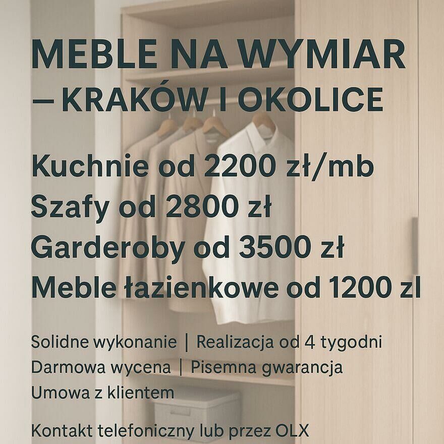 Kuchnie na wymiar od 2200 zł/mb – Kraków i okolice – solidnie i terminowoWykonuję meble na wymiar: