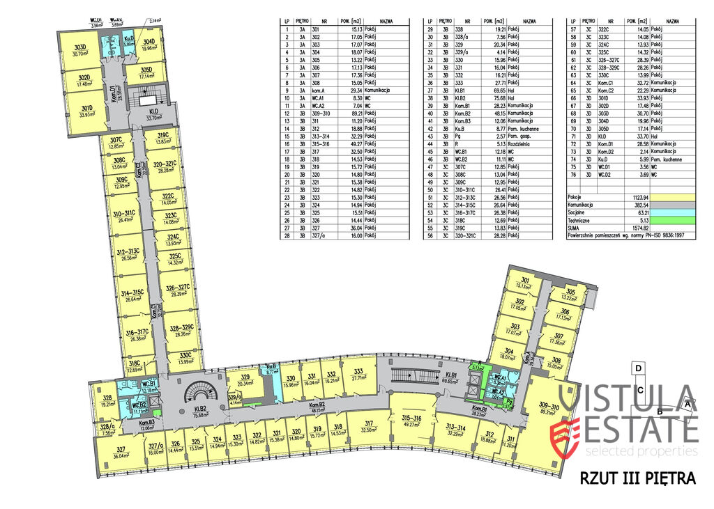 Łączna powierzchnia lokalu to 43,95 m2. Rzut lokalu został