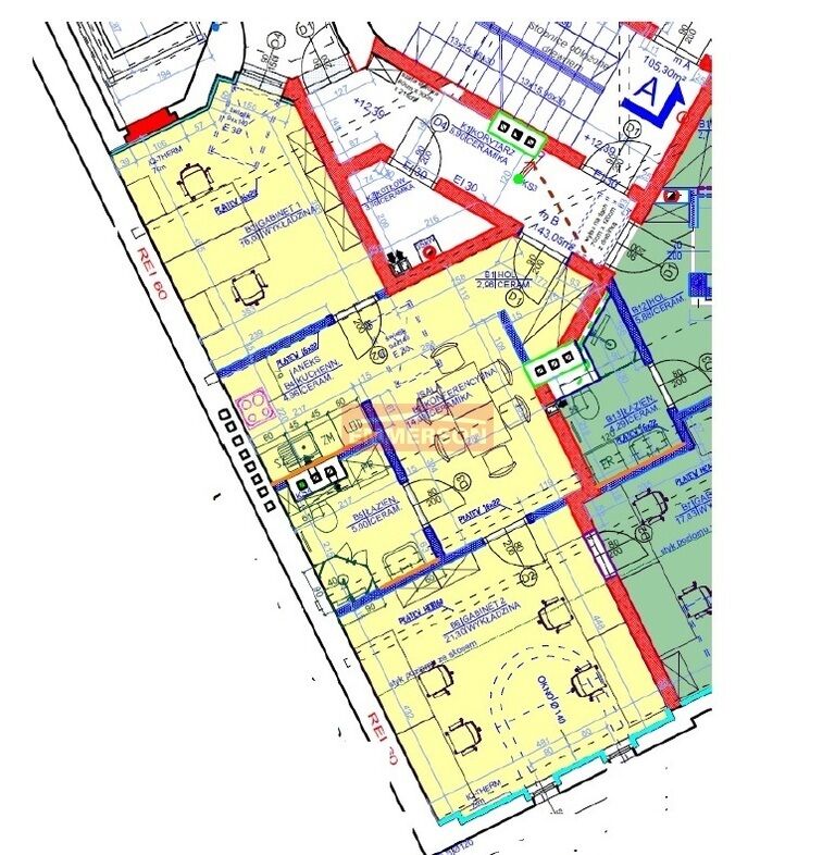 Składa się z pomieszczeń biurowych, aneksu kuchennego, łazienki z