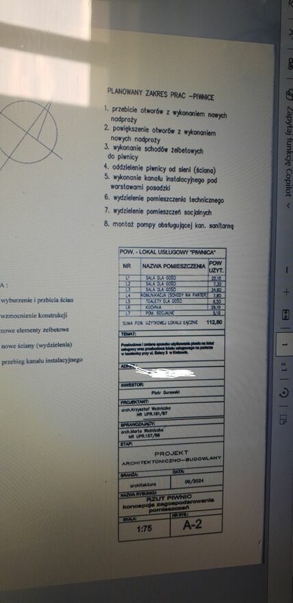 Poziomu w piwnicy (pogłębionej i totalnie wyremontowanej, wyposażonej w pełne media, dostosowanej do branży gastronomicznej) o powierzchni ok 120 m2.