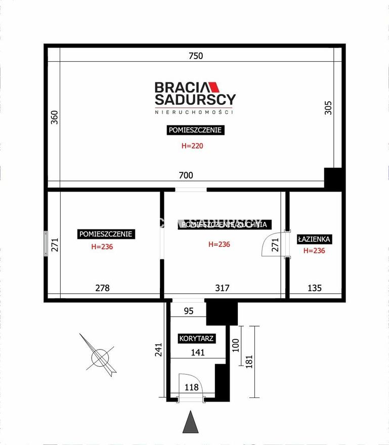 - pomieszczenie z oknem o pow. ok. 7,50 m2, wys. 2,36 m,