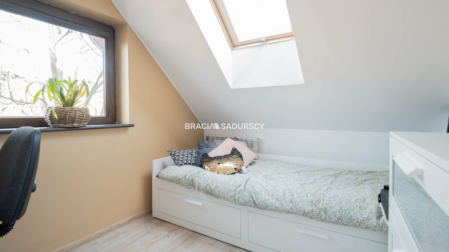 - Trzy oddzielne pokoje o powierzchniach; 12 / 2 x 10 m2 / 26,5 m2 łącznie z aneksem kuchennym.
