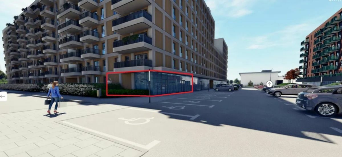 Narożny, witrynowy lokal o powierzchni 111,95 m2 typu open-space, do dowolnej aranżacji według preferencji najemcy, oddawany w stanie deweloperskim. Lokal przeznaczony jest pod wszelkiego rodzaju działalność handlową lub usługową (w tym zgoda wspólnoty na uzyskanie koncesji na sprzedaż alkoholu). Do lokalu przynależy ogródek o powierzchni ponad 70 m2.