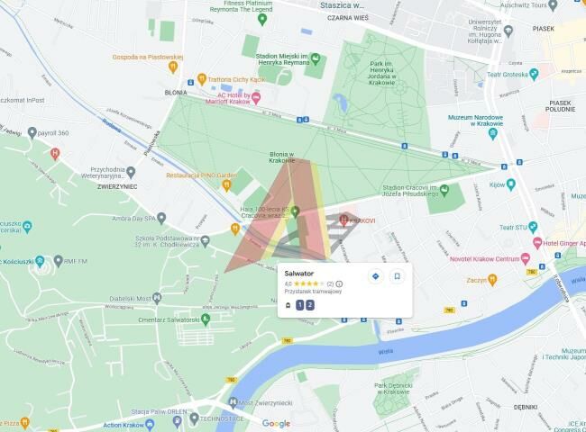 W pobliżu Błoń Krakowskich Obiekt 365 m kw widoczny z ulicy.Obecnie podzielony na część mieszkalną / pokoje gościnne , część jadalnianą /stołówkę oraz część szkoleniową , imprezową itp