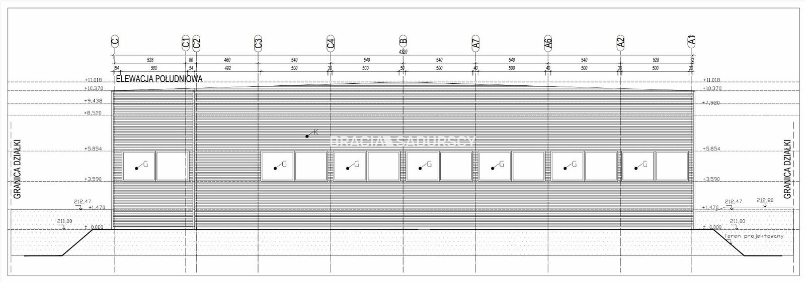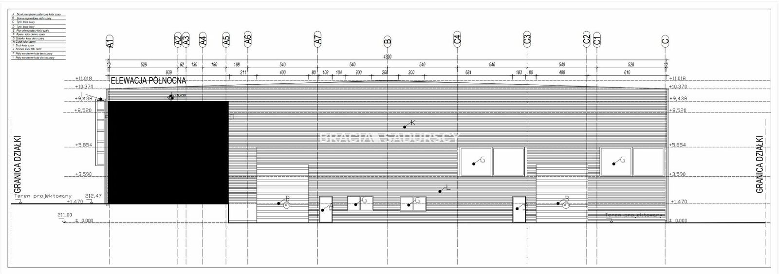 W ścianie północnej znajdują się 2 bramy wjazdowe o wym. 4 m x 4,5 m , umożliwiające wjazd samochodu ciężarowego TIR.