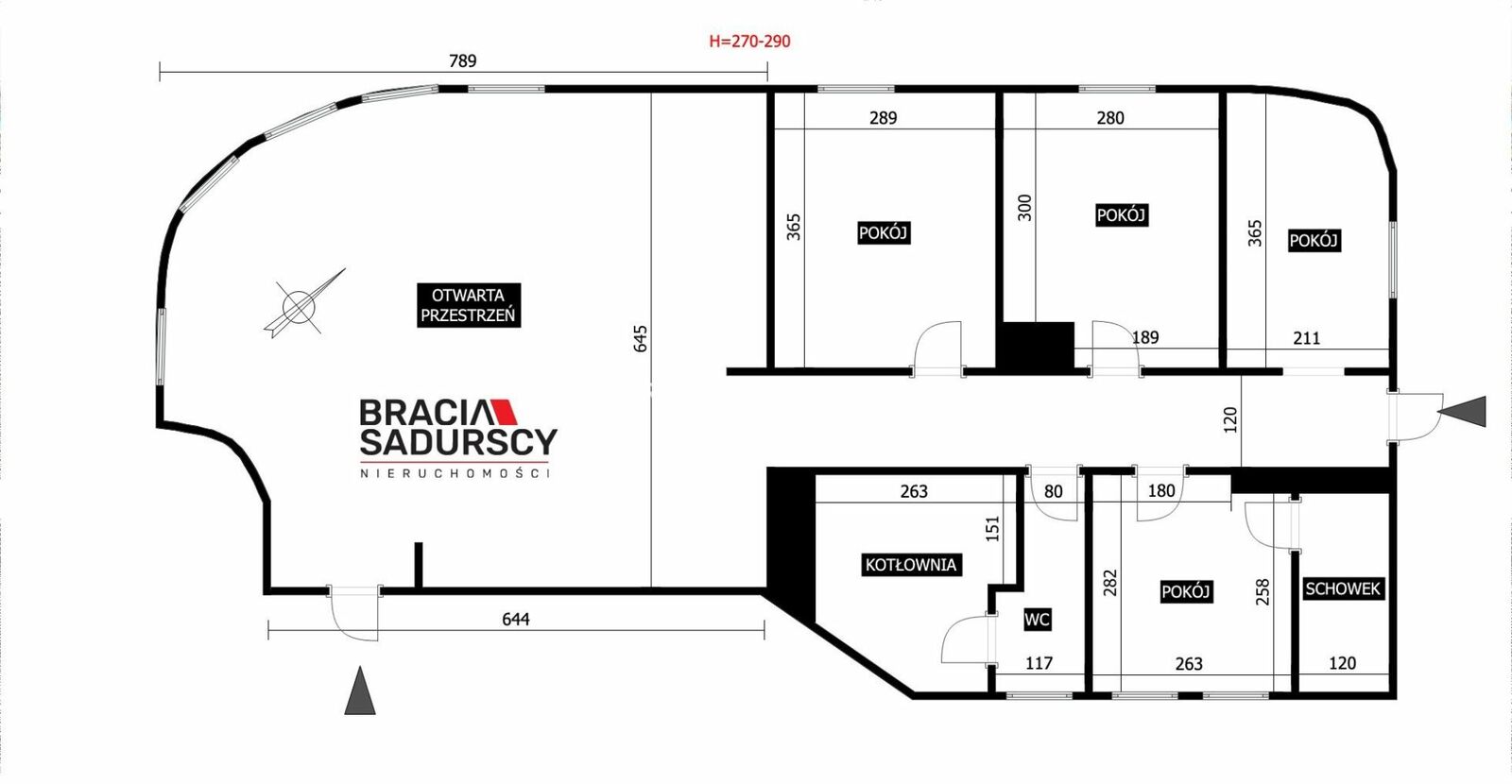 Układ: otwarta przestrzeń z możliwością adaptacji pod różne rodzaje działalności (usługi, gabinety, showroom, studio, mały sklep, biuro z dostępem dla klientów)
