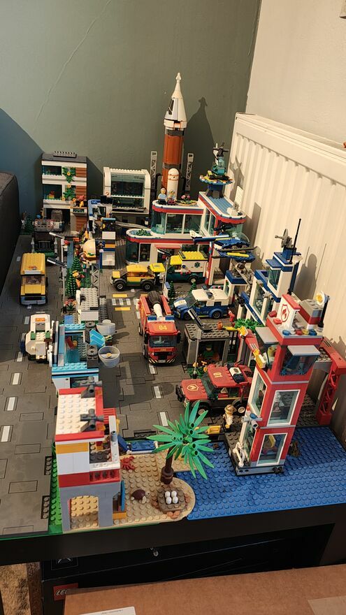 Do sprzedaży makieta LEGO – 12 zestawów LEGO CITY z lat 2020 – 2024 plus mieszanka z lat 90. Raczej chcę sprzedać jako całość (ale rozważne sprzedaż pojedynczych zestawów). Zestawy mają dodane części (np. podwyższenie budynku centrum lotów itp).Zestawy są z instrukcjami. Bez pudełek.