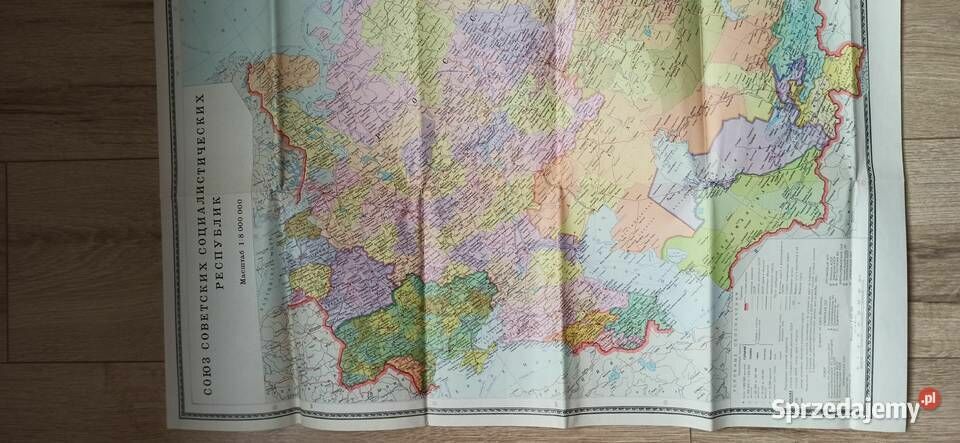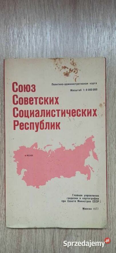 Mapa Związku Radzieckiego z 1977 roku.Mapa na jednym arkuszu o wymiarach 110 x 69 cm. Składana do tekturowej oprawki.