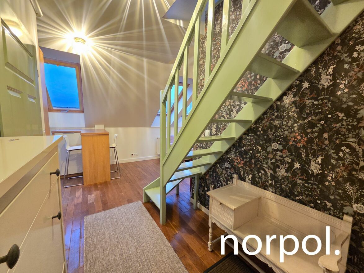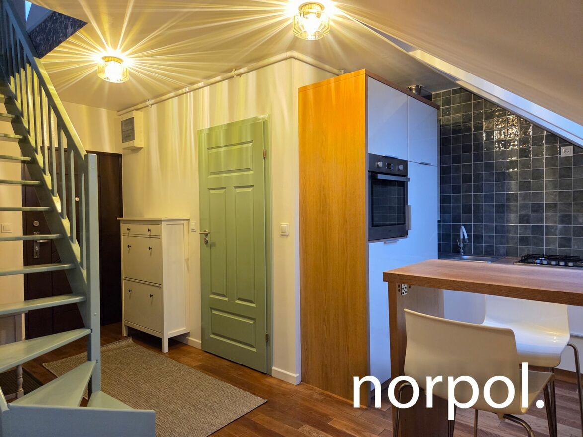 In one of the most convenient parts of Krakow, near Rondo Grzegórzeckie, yet offering peace and everyday comfort, lies this unique, two-story apartment with a floor area of approximately 50 m². The recently renovated apartment delights with its brightness, lightness, and pleasant, homely atmosphere, making you feel at home from the very first moment. The building is equipped with an elevator.