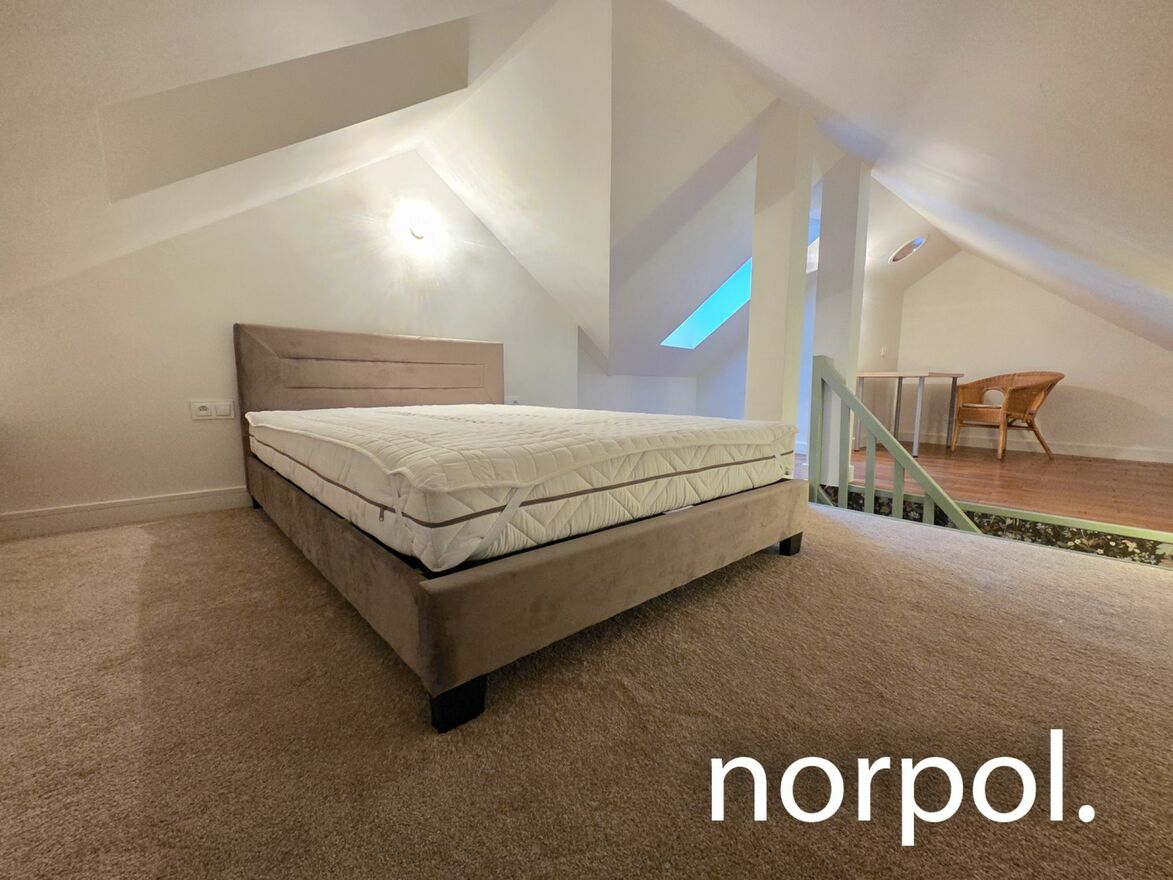The upper level houses a cozy bedroom designed with peace and privacy in mind. Additionally, there’s a desk here—the perfect place for remote work, studying, or peacefully organizing your day. It’s the perfect space to escape the hustle and bustle of everyday life, even for a moment.