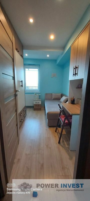 wyposażony w meblościankę robioną na wymiar, szafę oraz sofę