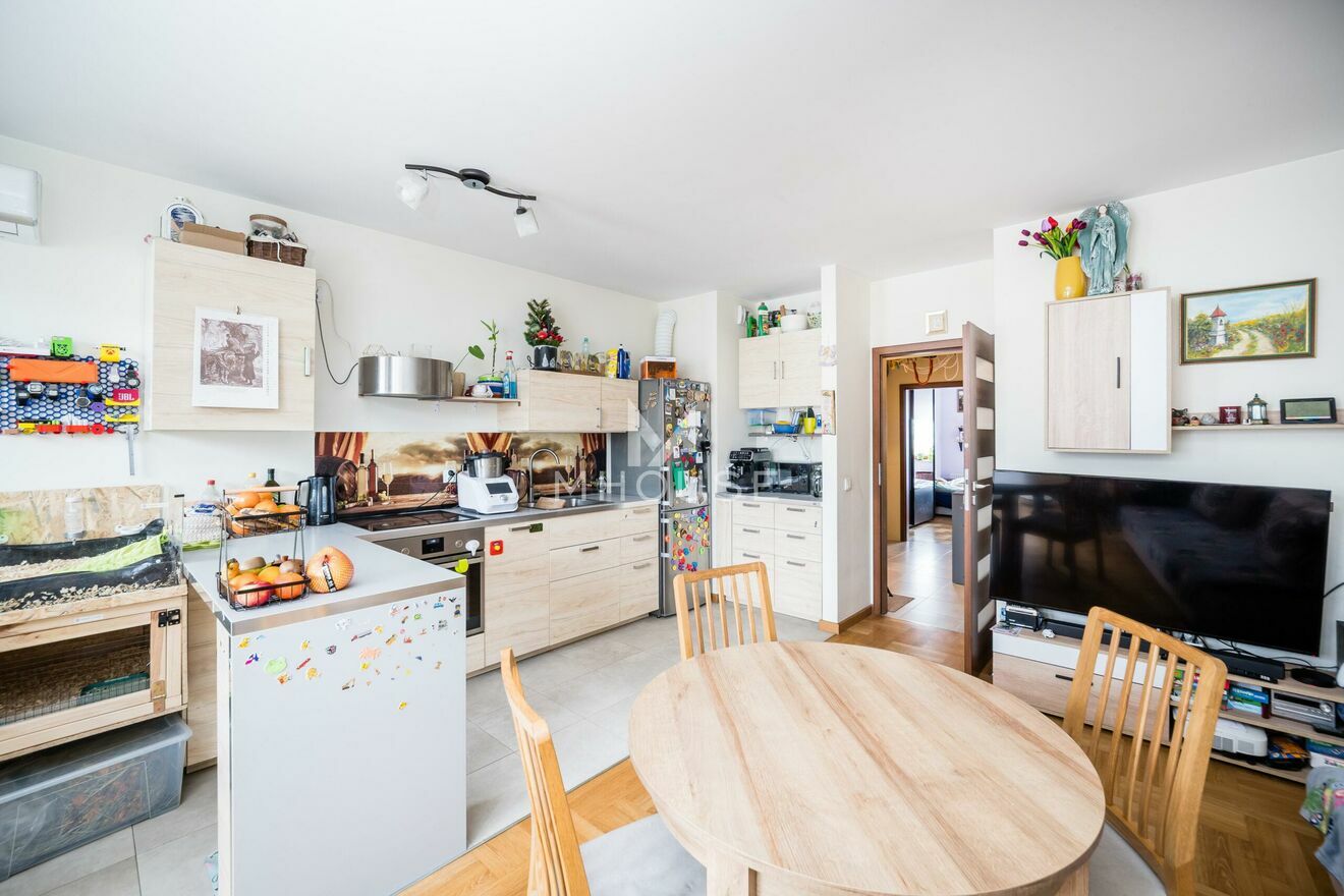 Nieruchomość o metrażu 57,98m2, położona na czwartym piętrze w bloku 5-piętrowym z windą. Składa się z przedpokoju, salonu z aneksem kuchennym, pokoju, sypialni, łazienki z WC, loggi, balkonu, miejsca postojowego w garażu (13,48m2, komórki lokatorskiej (2,75m2).