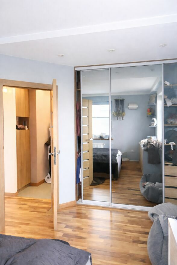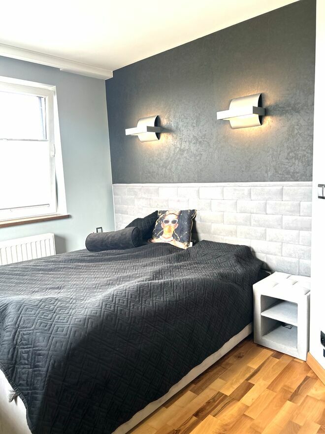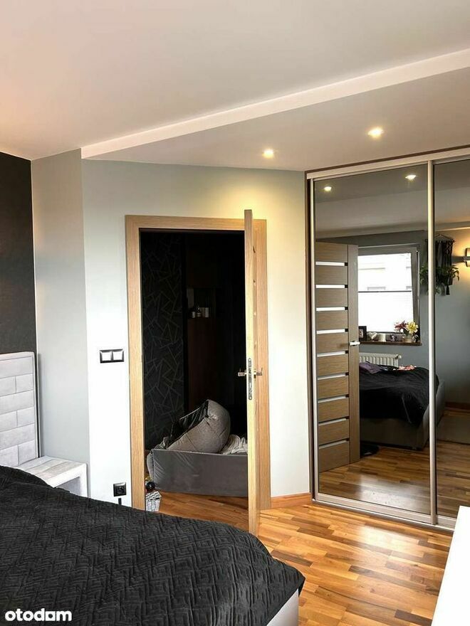 • Sypialnia (12,2 m²): Z ogromną szafą w zabudowie. Mogę zostawić całe umeblowanie (łóżko robione na zamówienie 1,5 roku temu za 12 tys. zł i komodę) – to meble na lata, nie z sieciówki.