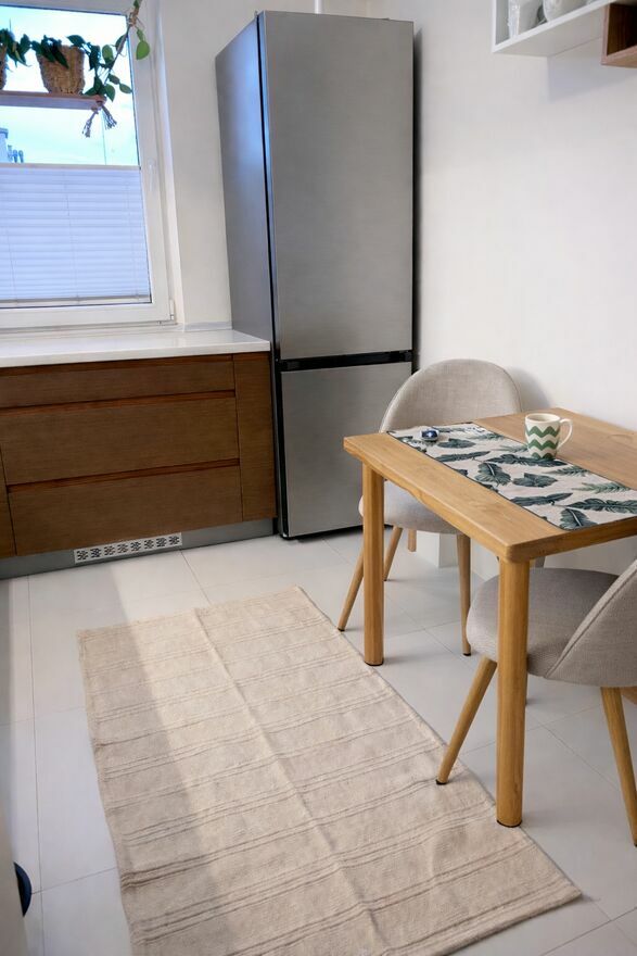 • Kuchnia (7,2 m²): Osobna, jasna, w pełni wyposażona (zmywarka, piekarnik – wszystko zostaje).
