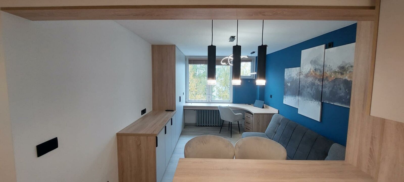 Mieszkanie po remoncie, w pełni wyposażone, z nowymi meblami w zabudowie i nowymi sprzętami AGD. W salonie rozkładana sofa, idealna również dla gości. Lokal cichy, jasny i słoneczny, gotowy do wprowadzenia bez jakichkolwiek nakładów.